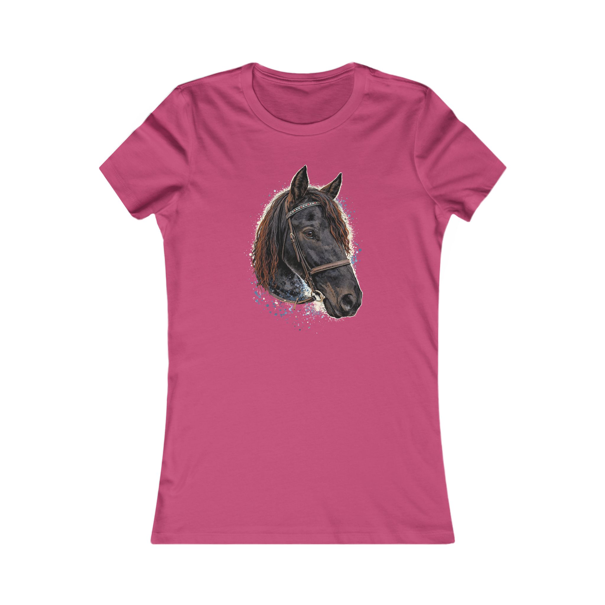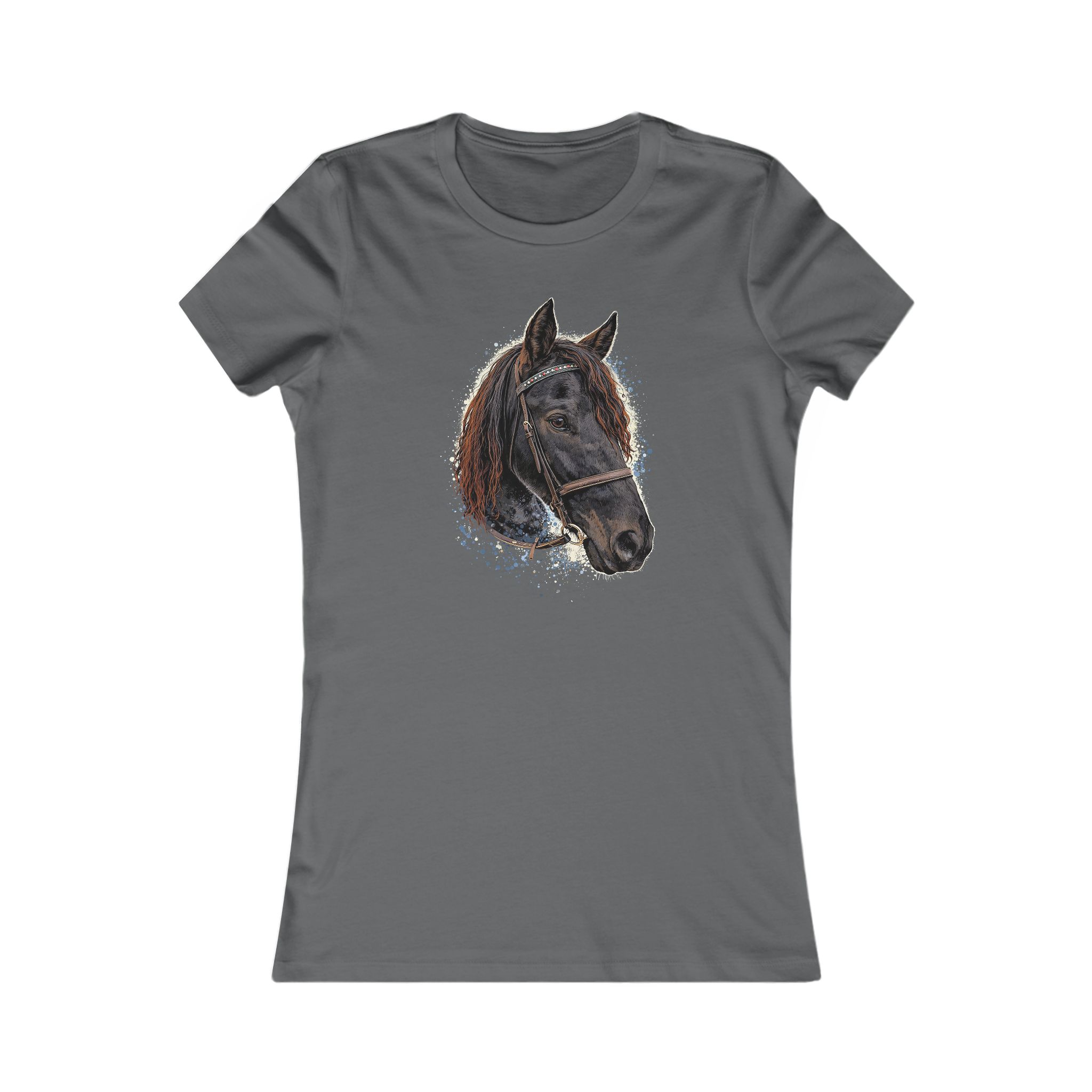 A slim-fit women’s tee that brings quiet equestrian charm to everyday wear. Soft, lightweight cotton drapes close to the body and shows off the detailed horse portrait at the chest — a calm, soulful gaze surrounded by painterly highlights. Wear it on morning barn rounds, relaxed trail rides, or coffee with friends; it reads as effortless and thoughtful. The ribbed collar and shoulder tape keep the shape crisp through repeated wear, while the tear-away label keeps comfort distraction-free. Runs slightly small, so consider sizing up for a relaxed fit or stick with your usual size for a fitted silhouette.
