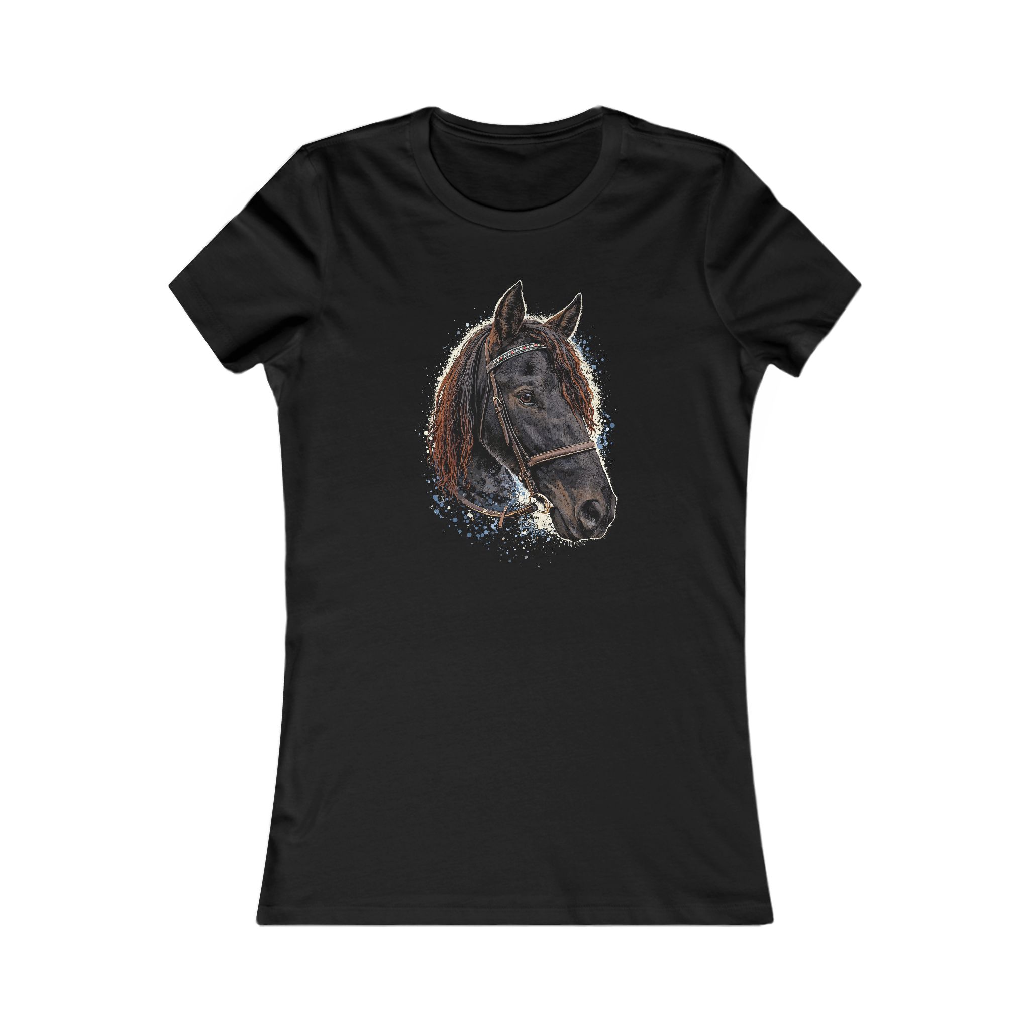 Women’s Horse Portrait Tee – Watercolor Black Horse Graphic